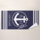 Monograma personalizado de 2 letras com nome personalizado marinho e praça de âncora branca / toalha de banho.
