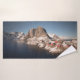 Fotografia paisagística de Hamnøya, uma aldeia tradicional de pesca com barcos pintados vermelhos na costa das Ilhas Lofoten no Norte da Noruega, Escandinávia.