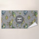 Esta adorável design de toalha de dinossauro cinza de escura está completa com um padrão de dinossauro de aquarela fofo, assim como um lugar para adicionar a inicial do seu filho.