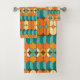 Toalha de banheiro moderna do Médio século. Padrão retrô.Cores: amarelo, turquesa, marrom e laranja.