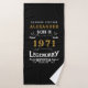 Um design de toalha clássica personalizada para aquela celebração de aniversário para alguém nascer em 1971 e fazendo 50 anos. Adicione o nome a este design preto, branco e dourado estilo retrorreflector vintage para um presente de 50 anos personalizado. Edite facilmente o nome e o ano com o modelo fornecido. Um maravilhoso presente de aniversário preto. Mais presentes e suprimentos de festas para a cinquenta comemoração disponível no design "Legendário" da loja.