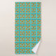 Adicione um esboço de Primaveras de Palma modernos do século médio a qualquer lugar que você vá com esta toalha de padrão Retro Turquesa e Orange Trellis. Foi inspirado por blocos de brisa de concreto antigos. A tomada desconstruída da arquitetura dos anos 50 dará uma sensação instantânea de designer à vida cotidiana.
