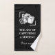 A fotografia da câmera cita o presente personalizado de Mão Toalha preto e branco. Design preto e branco personalizado com aspas inspiradoras e câmera em desenho de foco. Personalize com o seu famoso slogan e imagem, opcionalmente. Ideias de presente únicas para fotógrafos, colegas, patrões, profissionais, hobbyistas, editores etc. A arte de capturar um momento.