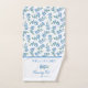Bonita toalha de mão em azul e branco com um padrão floral de flores que não me esquecem. Adicione o nome da família também em letras azuis elegantes.