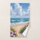 Beach in Bloom | Pink Hydrangea Oceanside Coastal Painting Hand Towel