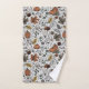 Esta toalha de mão "Colheita e Cornos" apresenta uma cena do outono ocidental de abóboras coloridas, crânios de vaca enfeitados com rosas, bolotas e folhagem de outono contra um fundo elegante de cinzas.