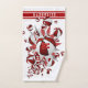 Esta "toalha" divertida de basquete para o seu saco de engrenagens apresenta uma "explosão" de tamanhos variados, bolas de basquete vermelhas e brancas e formas de estrelas vermelhas e cinzas em um fundo branco - um padrão de minúsculas cobrir brancas, a estrela vermelha - personalizam-se com o monograma do atleta no maior basquete e nome em faixas de varSIDADE vermelha verticalmente orientadas - por katz_d_zynes