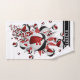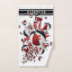 Esta "toalha" divertida de basquete para o seu saco de engrenagens apresenta uma "explosão" de tamanhos variados de bolas de basquete vermelhas, pretas e brancas e formas de estrelas vermelhas e cinzas - um padrão de minúsculas cobrir brancas, a estrela vermelha - personalizam-se com o monograma do atleta no maior basquete e nome em faixas de varSIDADE pretas verticalmente orientadas - por katz_d_zynes