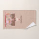 Garota Gingerpão e toalha de mão da casa doce de Natal. Casa de pão de gengibre adorável e é um dono orgulhoso com os maiores olhos e sorriso convidando-o para entrar. A casa está se gabando de glacés cor-de-rosa e doces com um cone gigante de sorvete no telhado. Edite a saudação à sua escolha. Se desejar, você pode alterar a cor de fundo para corresponder ao decoração e estilo do feriado.
