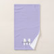 Personalizado Personalizado Crie Seu Próprio Nome Do Script De Lavanda Nome Monograma Toque Mão. Adicione um toque doce e feminino ao seu banheiro ou bolsa de ginástica com esta toalha de mão monograma, desenhada com um estilo triplo para uma aparência elegante e na moda. Apresentando uma inicial branca sobre um fundo púrpura de luz suave com uma lavanda ou matiz lilaca, combinada com um nome de escrita preto elegante, esta toalha é simultaneamente fofa e personalizada, trazendo um toque de elegância e charme a qualquer espaço. Personalize-o com um nome próprio ou escolha um nome de família para um presente ponderado. Esta toalha faz o presente perfeito para damas de honra, aniversários, mães, irmãs de irmandade, filhas, ou qualquer ocasião especial. Seja para uso diário ou como sotaque decorativo, esta toalha é um presente funcional e feminino que adiciona um toque chic a qualquer saco de moradia ou ginástica.
