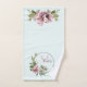 Pêonias, folhas e toalhas de mão, cor-de-rosa, cor-de-água elegantes, personalizadas, iniciais ou monográficas. Use "personalizar ainda mais para ajustar a fonte, o posicionamento ou a cor do plano de fundo.