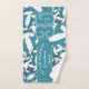 Esta toalha atlética para jogadores de vôlei tem várias dimensões, teal e volleyball branco se virou em todos os sentidos em um fundo branco e um número de camisa proeminente sobre uma faixa de cor negrito, de comprimento do cheio, na qual você também pode personalizar o nome do atleta, nome do time e nome mascot - por katz_d_zynes