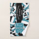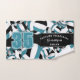 Esta toalha divertida para jogadores de vôlei apresenta volleybolas de tamanho variado com cores de equipe preto e preto viradas em todos os sentidos em um fundo branco e um número de camisa proeminente em cima de uma faixa preta de comprimento de cheio, na qual você também pode personalizar o nome do atleta, o nome da equipe e o nome do mascote - por katz_d_zynes