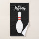 Toalha de mão personalizada para ventiladores de boliche. Nome personalizado com desenho de pino de boliche clássico.