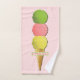 Toalha de tênis criativa com bolas de tênis coloridas como copas de sorvete em fundo cor-de-rosa. Editar texto para adicionar nome.