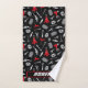 Toalha de mão personalizada para mecânica, com um padrão ilustrado de ferramentas e equipamentos de reparação de automóveis. Adicione seu próprio nome, ou outro texto, à área de personalização.