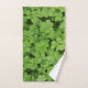 Gotas de chuva frescas no trevo deixam toalha. Toalha de mão natural verde