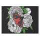 Ilustração vetorial desenhada à mão da mariposa cinabar sobre um buquê de flores de pénia
