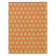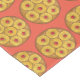 Tablecloth mostra um marcador original de um delicioso bolo de abacaxi invertido.