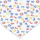 As letras alfabéticas ABC azul amarelo-vermelho estão espalhadas sobre um fundo branco. Um impressão divertido para as crianças. Procurar produtos coordenados no 123 | ABC | Coleção de códigos binários.
