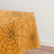 Vestir a mesa da festa do Halloween com esta toalha laranja assustadora coberta com teias de aranha pretas