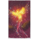 Uma toalha com uma ascensão de fênix em fundo roxo.