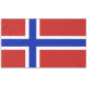 A bandeira da Noruega é vermelha, com uma cruz escandinava azul-indigo, fiada a branco, que se estende até às extremidades da bandeira; a parte vertical da cruz é deslocada para o lado da haste ao estilo do Dannebrog, a bandeira da Dinamarca.