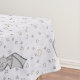 Esta mesa de 60" x 104" púrpura pastel "Spooky Cute" Bebê Halloween apresenta ilustrações deliciosas desenhadas à mão em tinta preta por Nathalie Portet, mostrando adoráveis morcegos bebês voando ao longo de todos os 4 lados entre estrelas e luas contra um fundo roxo suave e pastel.