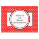 Reúna família e amigos para o piquenique familiar anual. Bolinhas brancas festivas adornam o sólido fundo vermelho brilhante. Personalize com seu nome de família. O centro da toalha tem o aspecto de placas duplas esboçadas em preto e vermelho com guardanapos brancos. Padrão geométrico de moda. Arte original e design © TamiraZDesign.