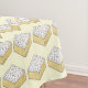 Tablecloth mostra uma ilustração original de uma fatia clássica do 'bolo escolar' britânico, tocada com gelo de baunilha e borrifadas do arco-íris.