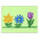 Flores bonito na margarida ouro amarela, azul-amarela, e tulipa roxa floridas na grama do jardim. A atualizar fundo verde-claro. Projetado para ajustado de panos de mesa de 60" x 84" ou 52" x 70". Adorável para o primavera ou meses de verão ou qualquer hora do ano trazer o dentro para o exterior. Consulte a pasta da minha cozinha/sala de jantar para ver os itens de mistura e correspondência, etc. Trabalho de arte gráfica original © TamiraZDesign.