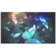 Fabulosa, brilhante, azul e amarela, borboleta noturna sobre fundo escuro.