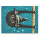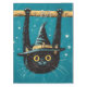 Celebre a estação assustadora com um gato negro voador num chapéu de bruxa voando pelo céu noturno.