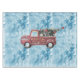 caminhão de safra vermelha com árvore de natal sobre fundo azul em floco de neve