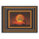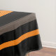 Cobrir sua cozinha ou mesa de sala de jantar com esta toalha de mesa de Halloween moderna. A design apresenta cinzas pretas e listras laranja com um design cemitério no centro. Use esta mesa sazonal para festas e para a decoração de Halloween.