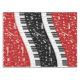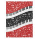 Chaves curvadas contemporâneo do piano e notas musicais brancas com contraste dos painéis vermelhos e pretos
