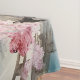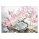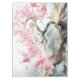 Um pavão majestoso ao lado de pássaros coloridos, colocado contra um pano de fundo sereno de montanha com delicadas flores de cereja na floração do cheio.
