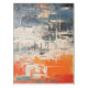 This abstract digital artwork, titled "Chromatic Crossroads," is a vibrant and dynamic piece characterized by thick, textured applications of paint that suggest the use of a palette knife or broad brushstrokes. The composition is vertically oriented and divided into distinct, contrasting color zones. The left side is dominated by fiery orange and red, transitioning into a central area of white, cream, and muted gray/black with strong vertical and horizontal scrapes and lines. The right side features deep, cool blues and blacks. The colors clash and converge near the center, creating an intense visual tension and a sense of movement or convergence, suggesting the "crossroads" in the title. The overall style is expressive and modern.