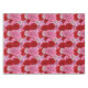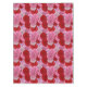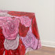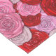 Uma ilustração minuciosa das camadas e camadas de rosas totalmente floridas em vermelho, rosa e lavanda.