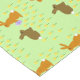 Esta maravilhosa toalha de mesa apresenta um par de belos coelhinhos de Páscoa cercados por flores amarelas daffodil. Os coelhos são castanhos com orelhas grandes, olhos negros e caudas brancas lisas. Um dos coelhos está segurando um ovo de Páscoa com um bonito arco roxo nele e está se aproximando para oferecê-lo ao outro coelho. Os daffodils são amarelos com um centro laranja brilhante.