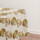 Tablecloth mostra uma ilustração original de um padrão de cogumelo em um fundo bronzeado.