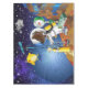 Artista de Zolotareva. Incríveis aventuras para pequenos descobridores. Incrível jornada. cosmos cartoon. Astronauta e alienígena de cães. Caravanas de naves cósmicas com Cachorro em conselho em busca de um planeta substituto.