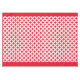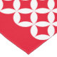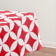 Um quarto circular repetido cortou a toalha de mesa colorida festiva, com padrão, em branco, sobre um fundo vermelho festivo brilhante ou mudou a cor do fundo para se ligar à sua própria escolha de cor de jantar. Desenhada por Sarah Trett.