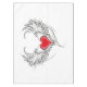 Coração vermelho pintado artificialmente com cinza de asas de anjo, decorado com contorno liso preto.