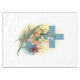 pintura em vintage com cruz azul, flores, paisagem do sol e nave do mundo antigo. cena náutica em blues.
