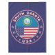 Crachá de Dakota do Sul com bandeira de Dakota do Sul e bandeira de cores dos EUA, forma arredondada. Emblema de Dakota do Sul. Selo de Dakota do Sul. Coleção dos Estados Unidos.