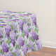 A toalha de mesa de algodão é mostrada em uma linda estampa floral de lilases.