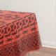 O tecido de mesa vermelho de tomate cereja mostra um design de padrão inspirado africano. Personalize o modelo trocando o plano de fundo.