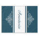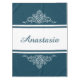 Design floral elegante com decoração de nomes e listras sobre fundo azul e branco