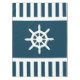 Design náutico com roda de vela e decoração de listras azuis e brancas sobre fundo azul